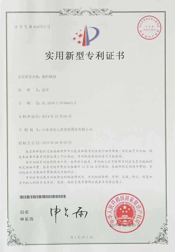 塑料铅封-发明专利
